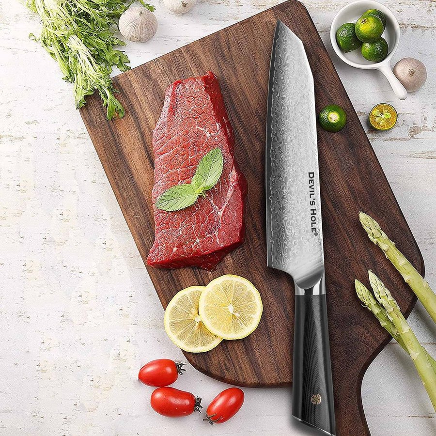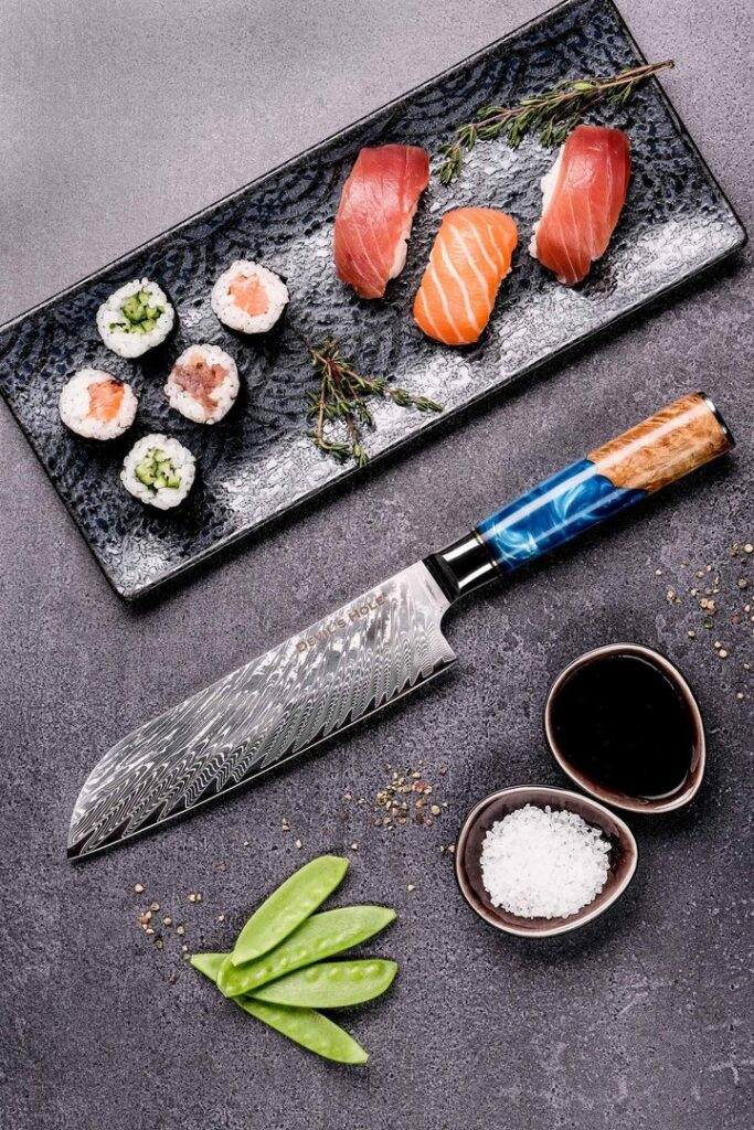 Santoku – das Messer der „drei Tugenden“: Fleisch, Fisch, Gemüse. Mit seiner breiten, scharfen Klinge meisterst du jede Aufgabe mit japanischer Präzision und stilvoller Leichtigkeit. Perfekt ausbalanciert. Unverzichtbar in jeder Küche.