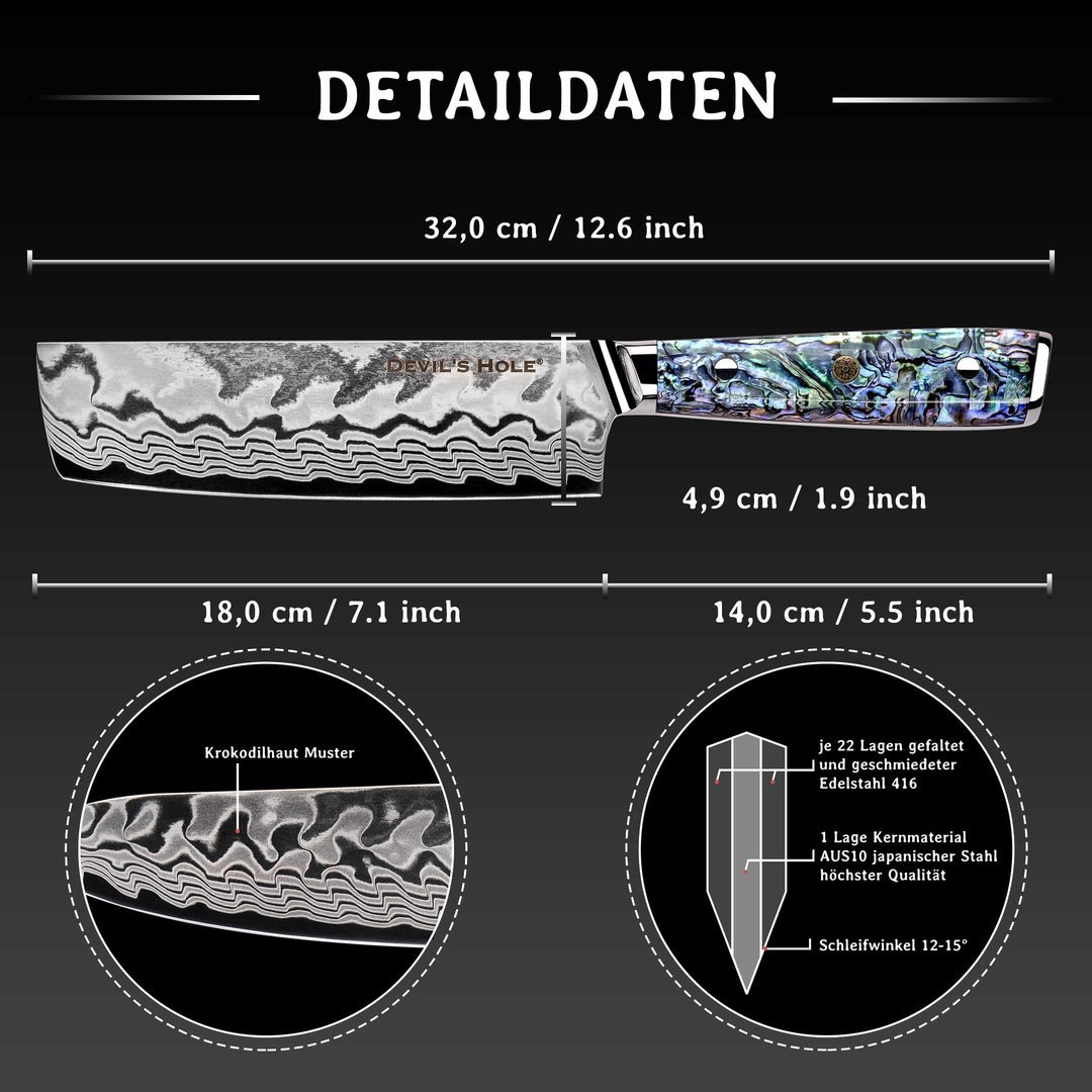 Das Abalone Nakiri ist die perfekte Wahl für alle, die Gemüse nicht nur schneiden, sondern zelebrieren. Inspiriert von der fernöstlichen Kochkunst, kombiniert dieses Messer höchste Funktionalität mit einem atemberaubenden Design.