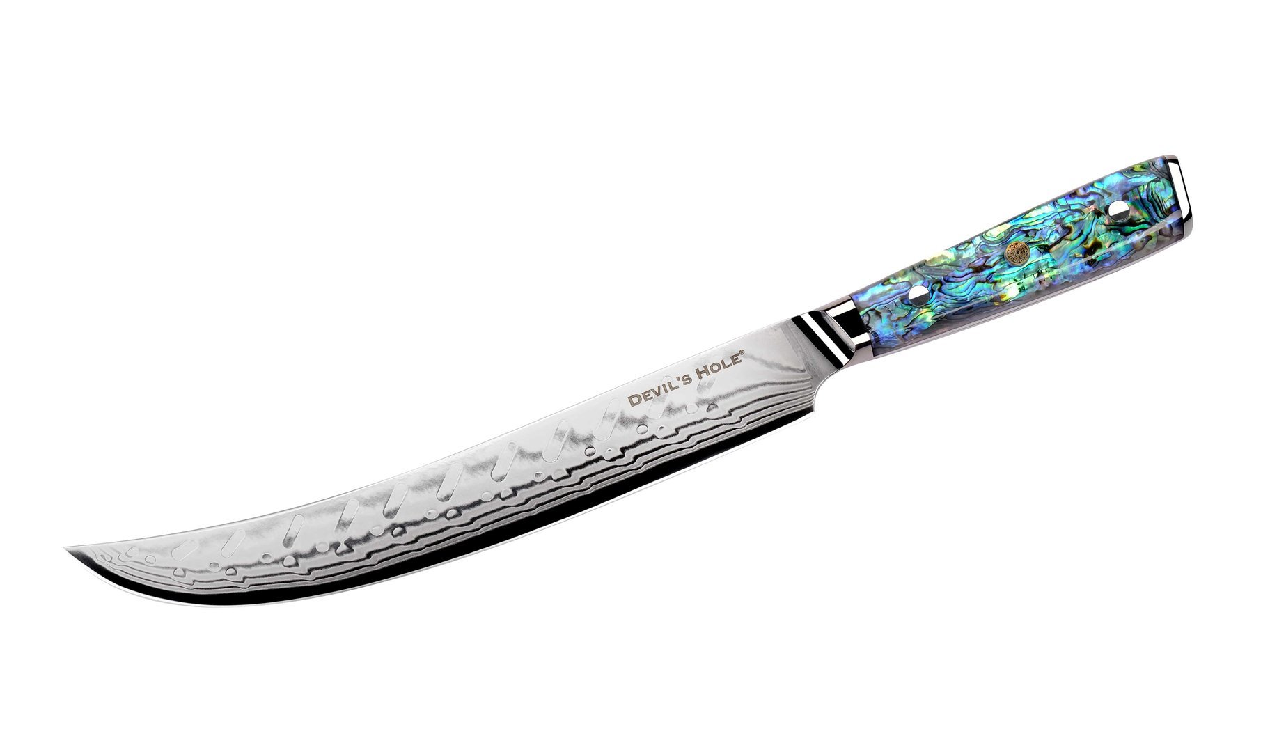 Das 10 Zoll Schlachtermesser aus der Abalone Kollektion von Devil’s Hole® ist ein absolutes Highlight für alle, die Fleisch mit Präzision, Kraft und Stil verarbeiten möchten. Die rasiermesserscharfe Klinge mit beeindruckenden 25,5 cm Länge erlaubt müheloses Schneiden, Tranchieren und Portionieren – ganz ohne Kraftaufwand. Ob große Braten, Wild oder Teilstücke: Dieses Messer bewältigt jede Aufgabe souverän.