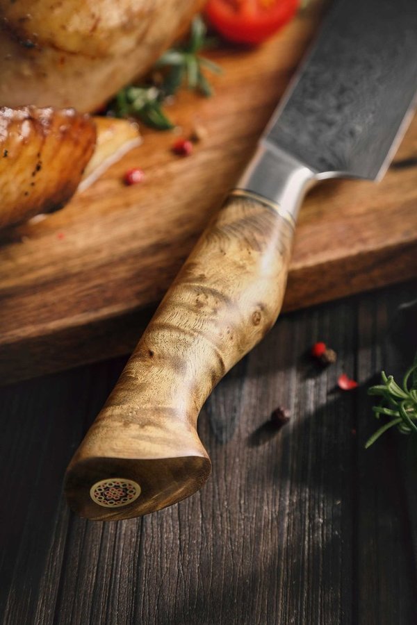 Das Devil’s Hole® Zerlege-Messer ist die ideale Wahl für festliche Anlässe und präzise Fleischzubereitung. Ob knuspriger Gänsebraten, Weihnachtsente oder ein zartes Hähnchen – mit diesem handgeschärften Damastmesser zerlegen Sie Fleisch sauber, kraftlos und stilvoll.