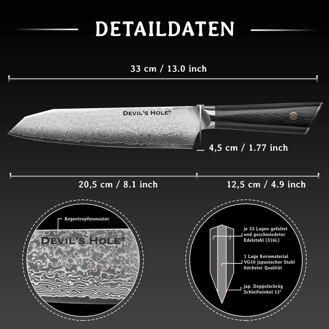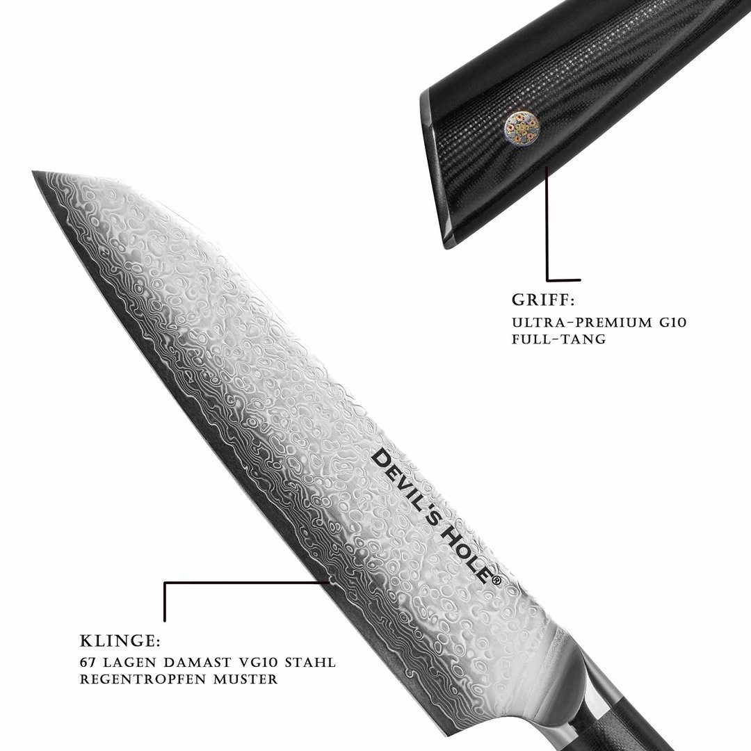 Material: 67 Lagen (VG10 Stahlkern + 66 Lagen 316L High Carbon Edelstahl)