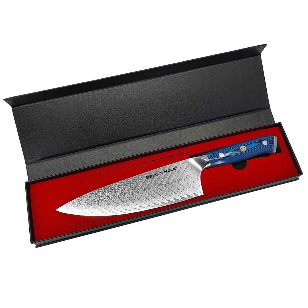 1x Damast Küchenmesser 8 Zoll mit Pakkawood-Griff