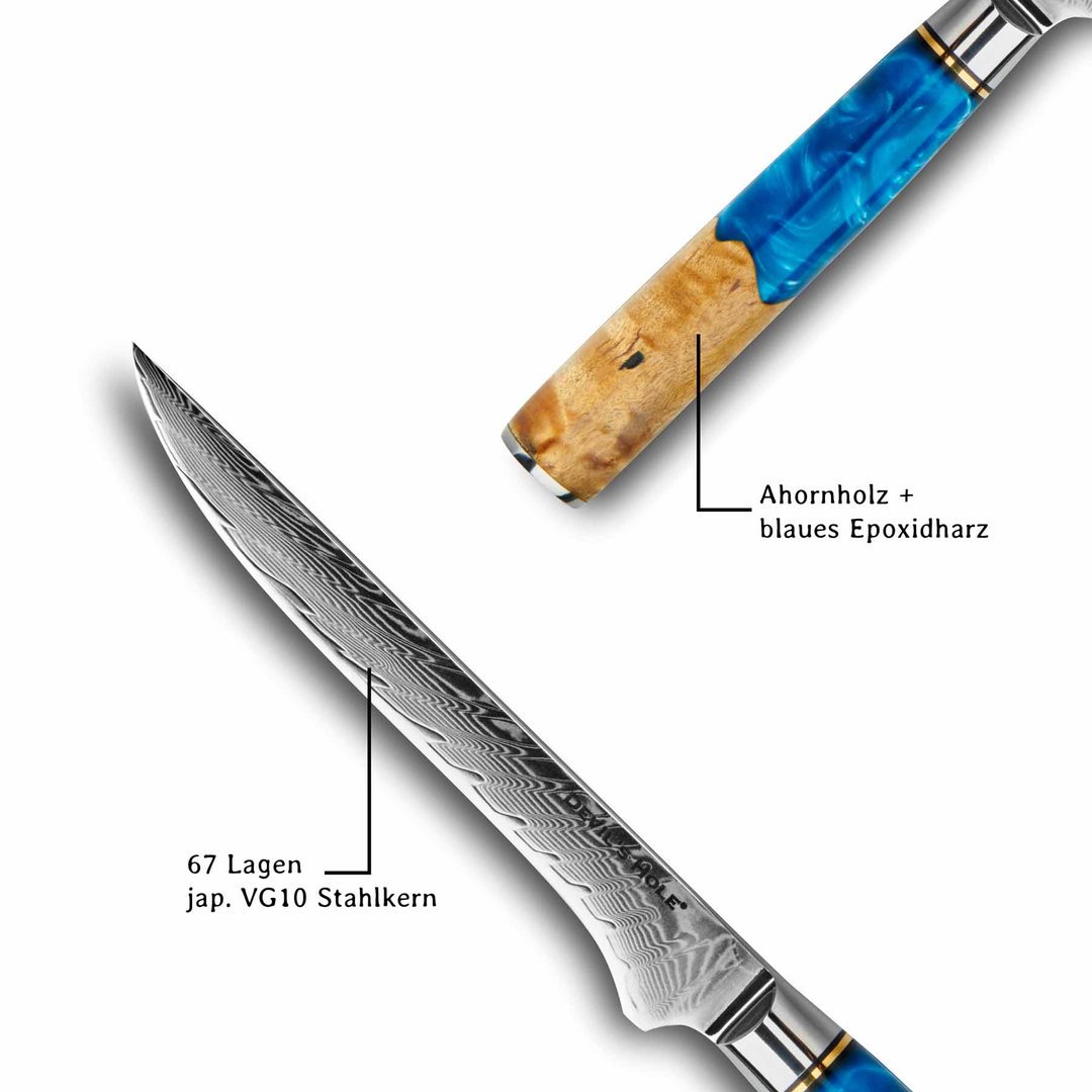 1 × Damast Filetiermesser „Deep Blue“ (67 Lagen, 15 cm Klinge)