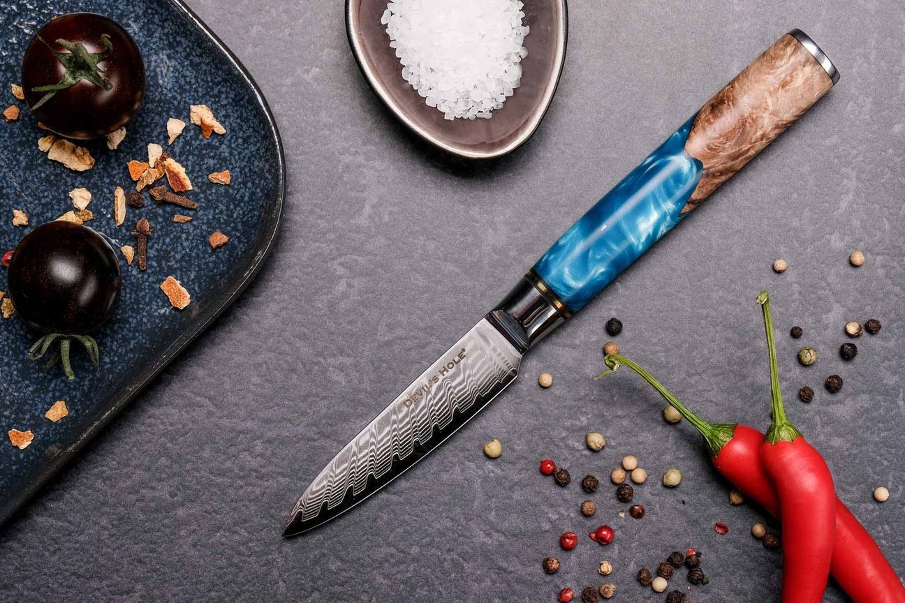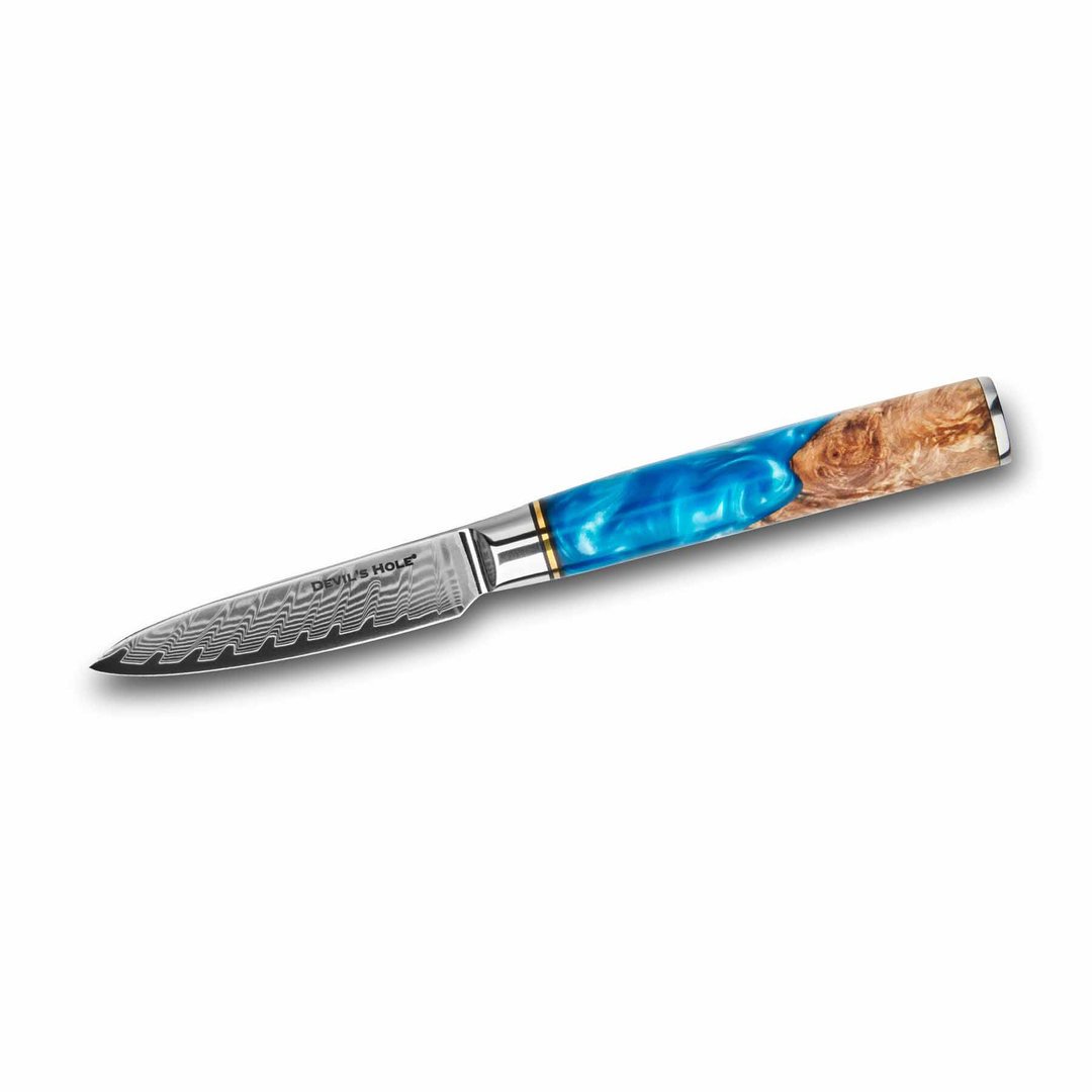 Dieses feine Schälmesser aus der Devil’s Hole® „Deep Blue“-Serie ist der perfekte Begleiter für präzise Küchenarbeiten wie Schälen, Tournieren und Dekorieren.