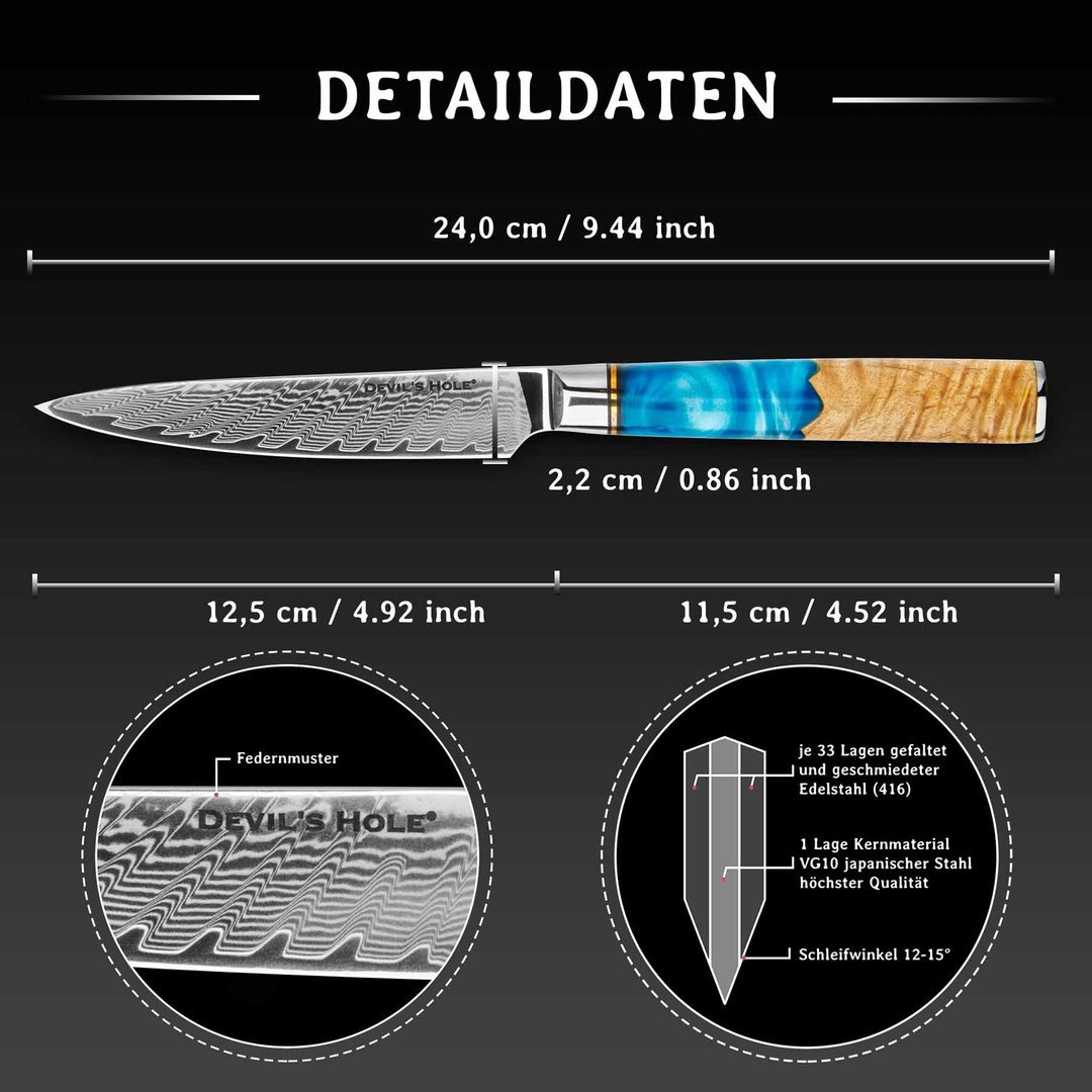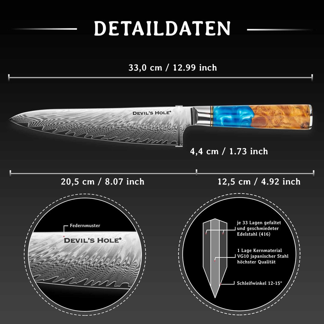 In der Welt der feinen Küche zählt jedes Detail – und das Devil’s Hole Deep Blue Damastmesser Set setzt Maßstäbe. Dieses 2-teilige Set bestehend aus einem kraftvollen 8-Zoll-Chefmesser und einem wendigen 5-Zoll-Universalmesser kombiniert höchste Funktionalität mit einem atemberaubenden Design.