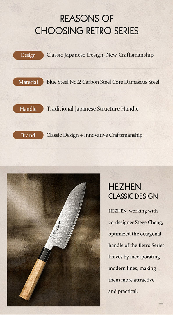Dieses 7.5 Zoll Santokumesser aus der Retro-Serie vereint traditionelle japanische Formgebung mit moderner Schmiedekunst.