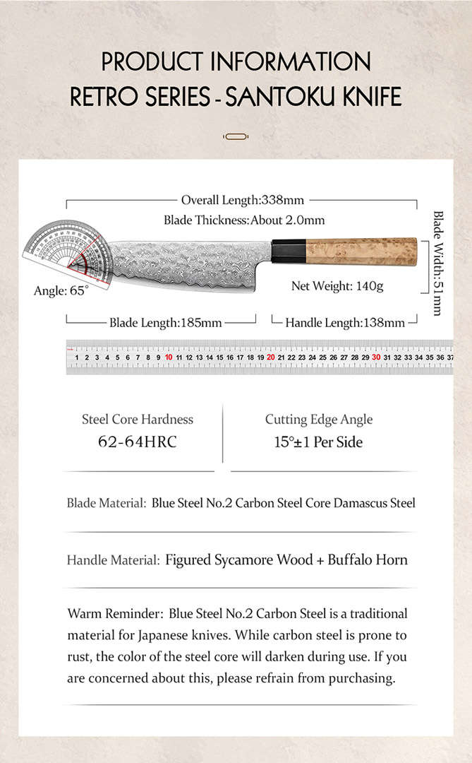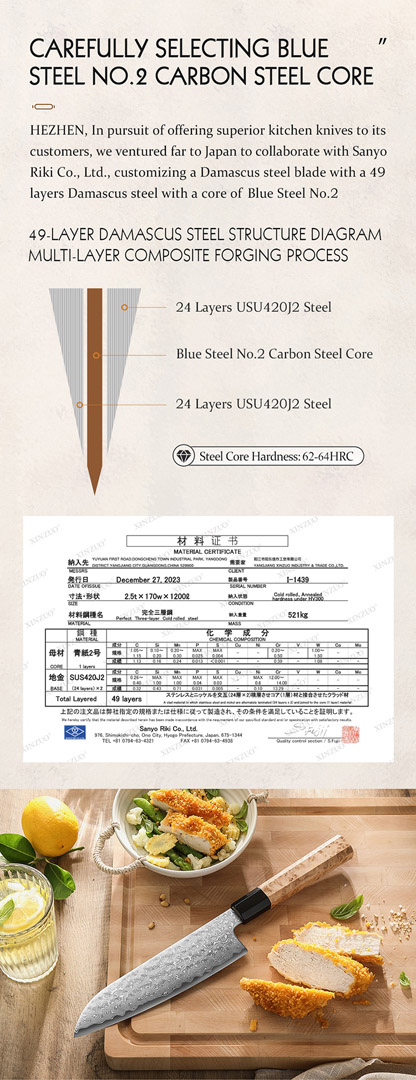 Kernmaterial: Blue Steel No.2 Carbonstahl (japanischer Hochleistungsstahl)